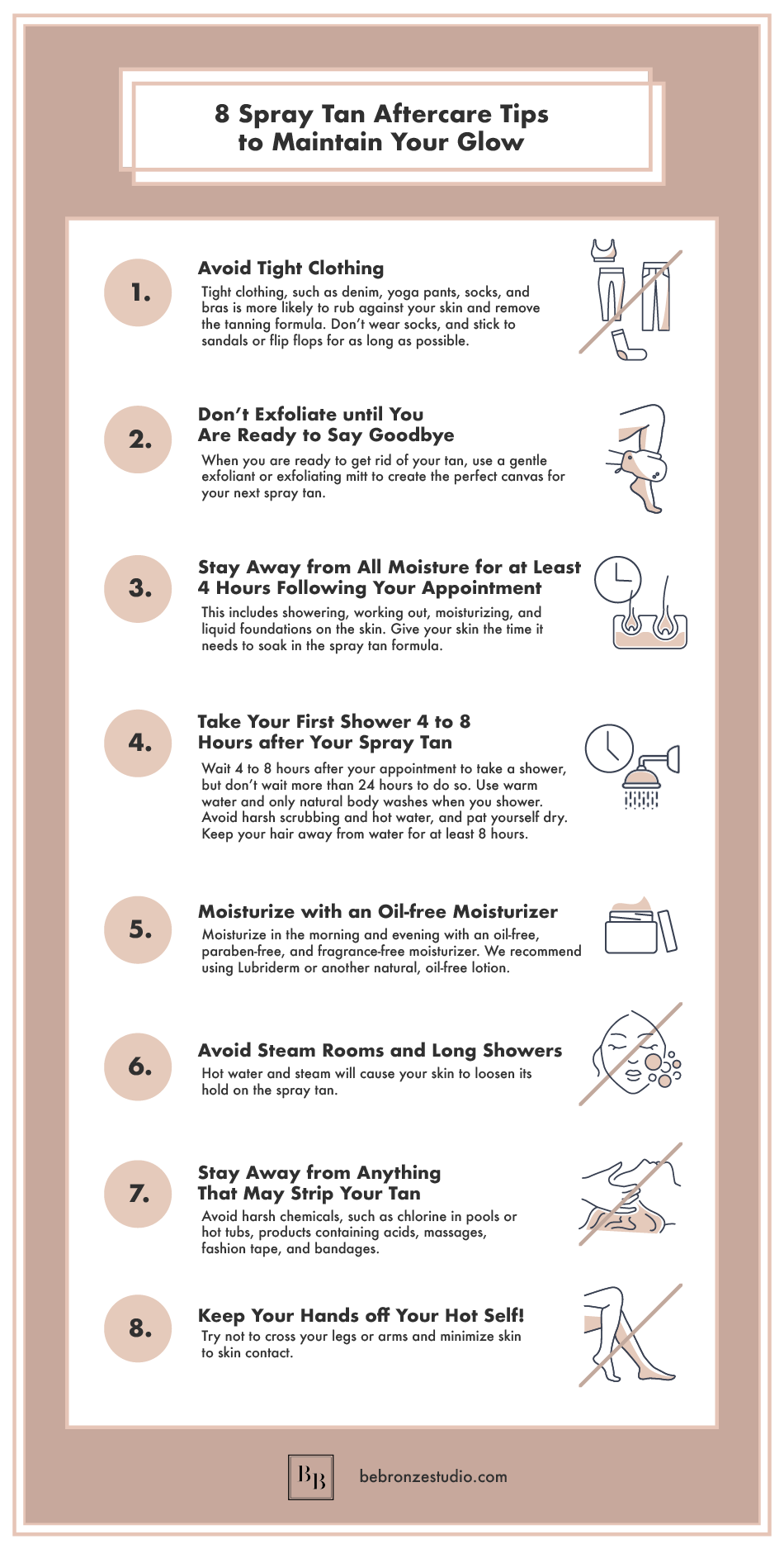 Wear loose clothing the first of our spray tan tips is not to wear any tight clothing whatsoever so that none of your tan rubs off leaving you with an. How to prepare for a spray tan the right way. 1.moisturise after your spray tan appointment, be sure to keep your skin hydrated with plenty.